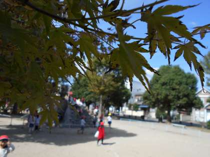 10月も下旬になったので,そろそろ秋を探しにと,校区にある午塚公園に行きました。晴れて暑いくらいの天気のい中で,どんぐりや落ち葉などを探したのですが…。期待していたほど,見つけることはできませんでした。今年はまだ早かったようです。