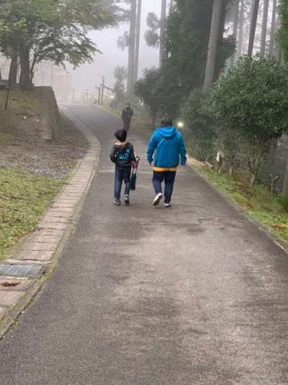 合同朝の集いに向けて集まっていきます。時間を守って,しっかり集合できました。
