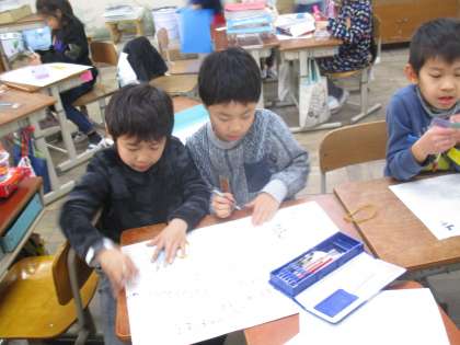 1年生を招待して,おもちゃフェスティバルを開く準備を一生懸命にしています。