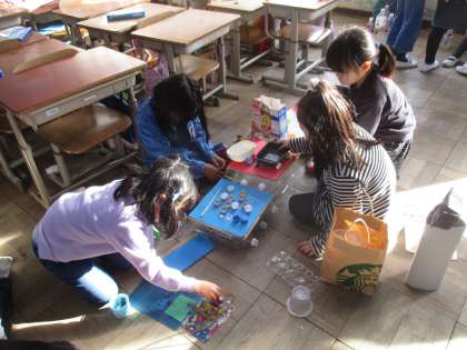 5時間目の生活の時間には,1年生を招待したおもちゃフェスティバルにむけて2年生だけで一度試してみました。