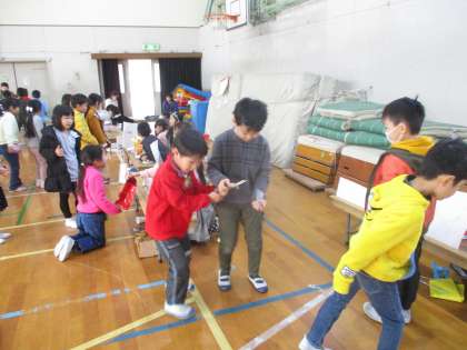 遊び終わった1年生には,折り紙などを使って作った景品をあげ,楽しんでくれる1年生を見て,嬉しそうでした。