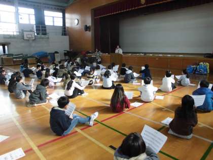 日本の古くから伝わるわらべ歌を教えてもらいました。みんなとっても真剣に話を聞いていました。聞いたことがある曲もあったみたいです!