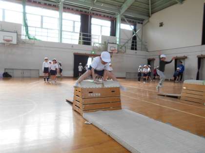 とびばこあそびも2週目に入り,力強い踏切りやタイミングをつかめてきました。腰を高く上げてもっともっとジャーーーーンプ!!