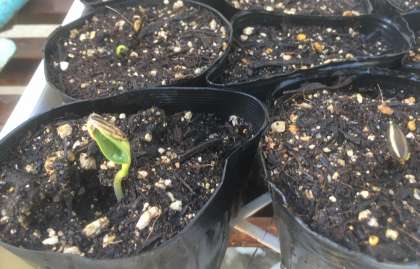 先週まいた,たねから芽(め)が出ていました!ゴールデンウイークの間も植物は成長をつづけていたのですね。