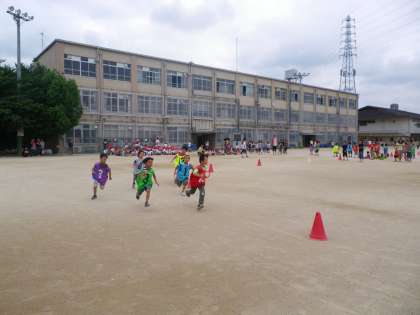 中間休みに、集会委員会主催のリレー大会がありました。高学年はすでに終わっているのですが、今日は低学年とわかば学級のお友達が出場しました。学年のみんなも応援に運動場に集まっています。