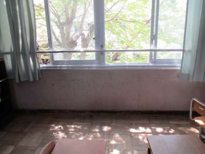 きょうしつにいくと,ゆかがキラキラひかっていました。