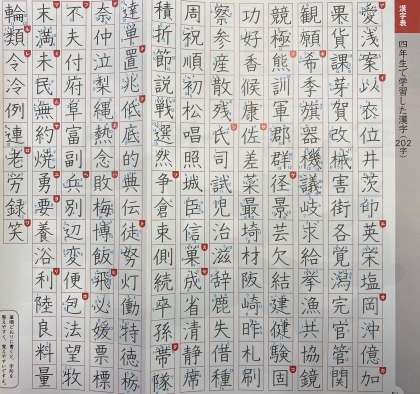 書写の教科書に4年生で習った漢字を復習できるページがあるのでぜひ活用してください!