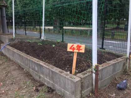 今日はみなさんが下校した後に,ゴーヤ(ツルレイシ)を育てるために畑をきれいにしました。他の学年の先生達も「いっしょにやりますよ!」と手伝ってくださいました。これから1年間しっかりと成長を見守っていきましょうね!