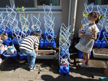 先日,ヒマワリ・オクラ・ダイズ・ホウセンカの中から1つを選んで植えました。