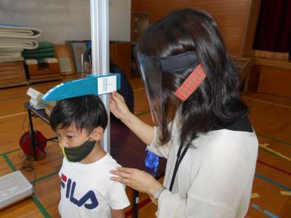 体育館で身体計測を行いました。密を避けながらの身体計測です。