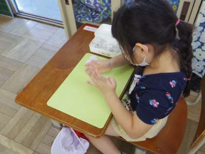 「ハンバーガーを作ったよ。」「粘土をたくさん重ねてみたよ。」と目を輝かせながら取り組む姿が素敵でした♪