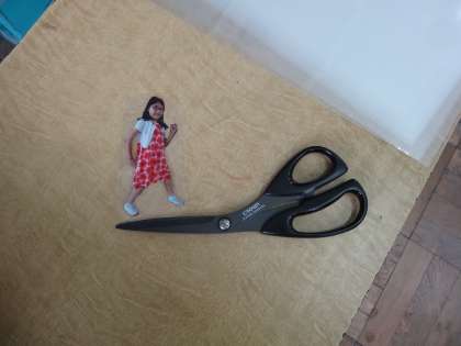 撮影した自分のポーズを切り取り,ラミネートしました。