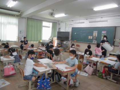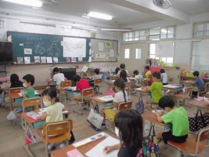 先週から 図工では「おはなしから うまれたよ」という学習に取り組んでいます。お話を聞いて,思い浮かべたことを楽しく絵に表す学習です。