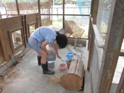 友達と共に,うさぎ小屋の掃除やエサ・水やりを頑張っていました。