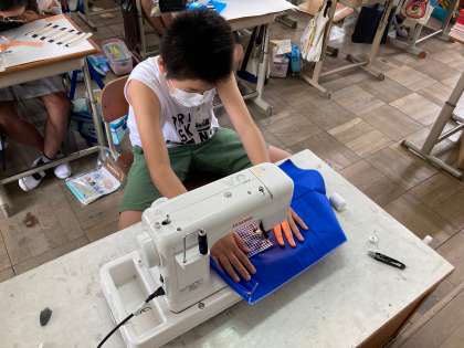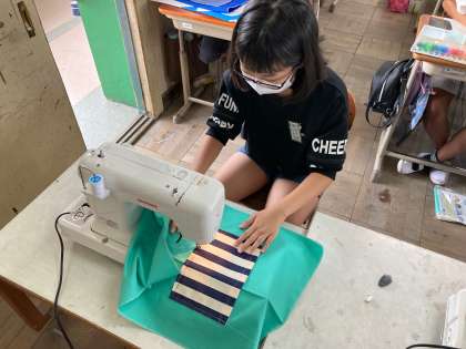 アイロンとミシンを使って,きんちゃく袋を作っています。