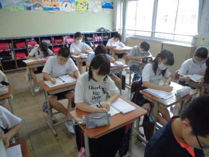時間を決め,今日の宿題を少しだけ学校でやりました。
