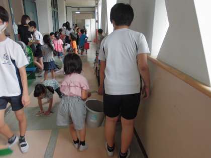 教室をのぞいてみると,1年生と一緒にバケツを持って運んでいる姿や下雑巾を1年生と一緒に運んでいる姿を発見しました!