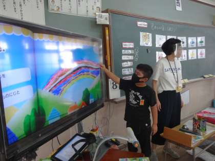 英語で各色の言い方を確認した後,自分だけの虹を描きました。