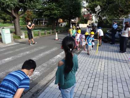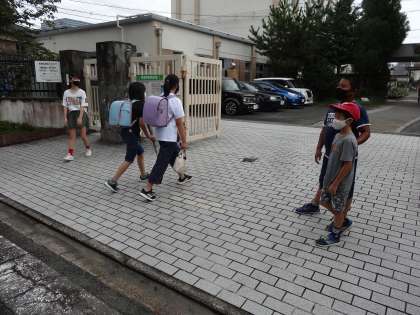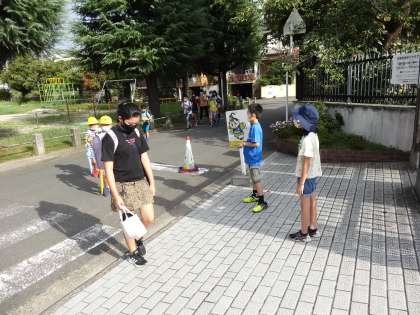 集団登校よりも早く来て,全校のみんなにあいさつです。