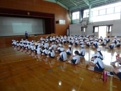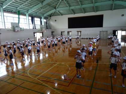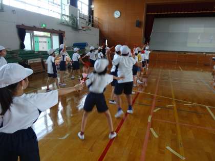 体育参観に向けての練習をしました。鳴子を使ってソーラン節を踊ります。