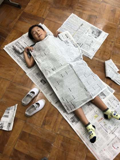 破く,投げる,かぶせる,集める等することで,新聞紙が様々な形に変わっていきました。