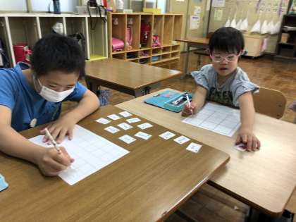 その後,写真を見て,ひらがなや2語文を書きました。