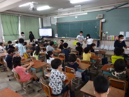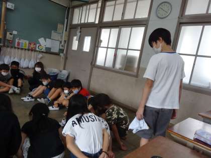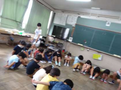 余った時間で,3年3組の教室では3グループ合同でハンカチ落としをしました。次は,運動場での遊びなので待ち遠しいです☆