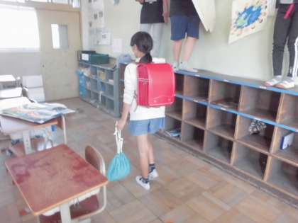 先日,家庭科の学習で作った「きんちゃく袋」に体操服を入れて来ました(^_-)-☆