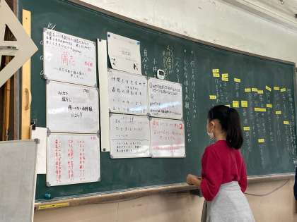 たくさんの意見が出たため,班ごとにそれぞれの思いを伝え合い,文章化した上で全体で交流し,決定しました。