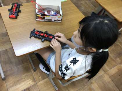 モーターのつけ方が分からない友だちには「こうだよ。」と教える姿も見られました。