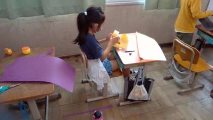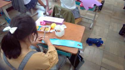 動物に変身している人,キャラクターに変身している人,仮面を作っている人など,みんなとても楽しそうに作っていました。