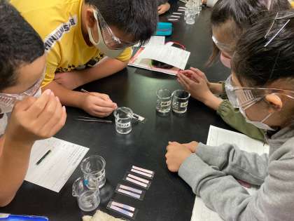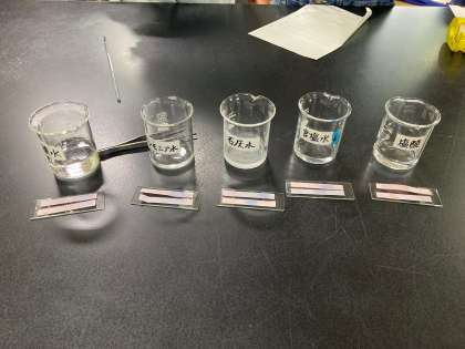 5つの水溶液をリトマス紙をつかって班のメンバーと協力して調べる姿が見られました。