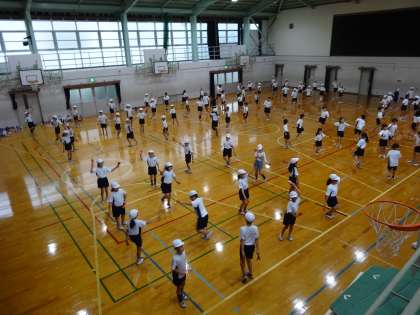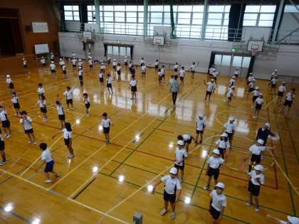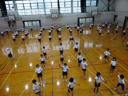 あいにくの雨でしたが,本番1週間前の本日の練習は体育館で行いました。