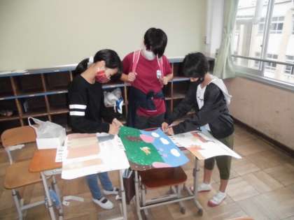 図工「お話の絵」を掲示するために,みんなの名前カードを貼ってくれたり,