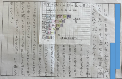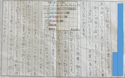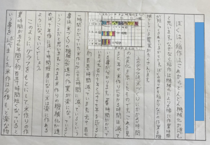 国語ではグラフや表を用いて自分の考えを書く「意見文」の学習をしています。