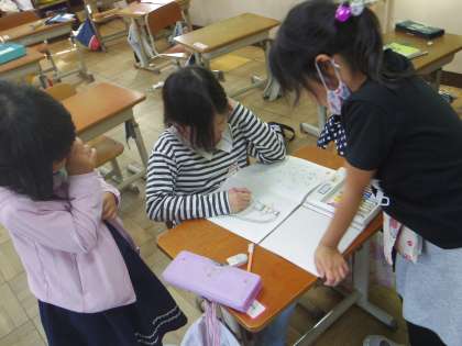 時々,教室で自由帳に絵を描いてお友達とおしゃべりを楽しむ子もいます。