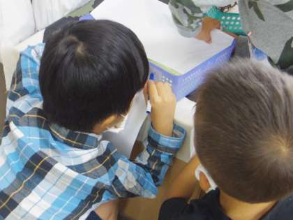 穴の開いたかごや,床,椅子など様々なものから でこぼこ をうつしとることができました♪