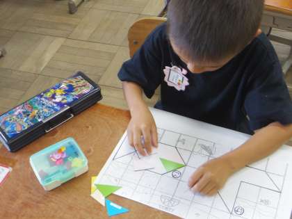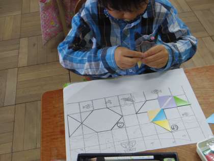 見本と同じ形を作ったり,何枚でできているかを考えたりしました。