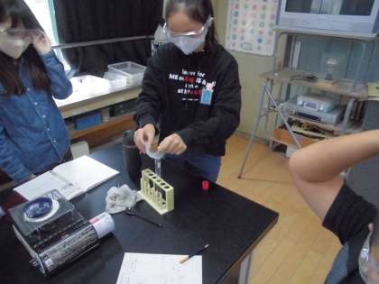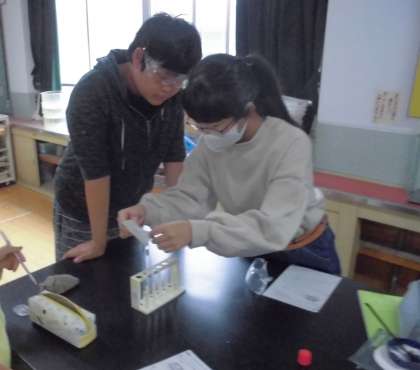 理科では,塩酸にとけたアルミニウムはどうなったのかを調べるための実験をしました。