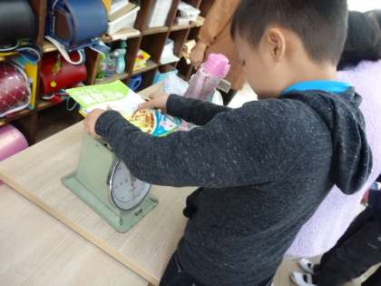ランドセルの重さや,自分の持ち物を予想して量りを使う学習をしました。