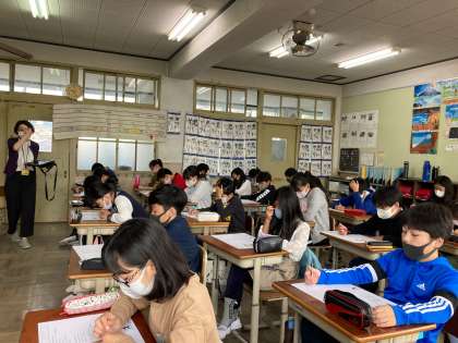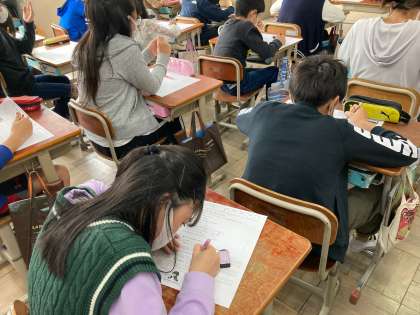 聞き取りテストや単語の意味を答える問題など,前回に比べると少し難しい内容になっていましたが,一生懸命取り組んでいました。