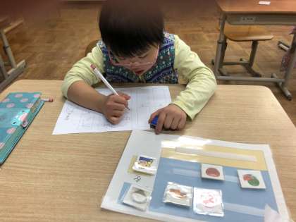 イラストの裏にはひらがなが書かれているので,文字が難しかったり,わからなかったりすると,確認しながら取り組んでいます。