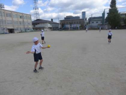 今週より全クラスが体育でハンドベースボールをしています。