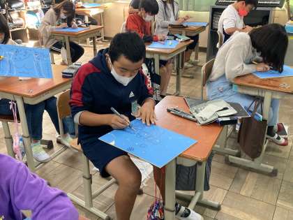 6年(Go for it!) 彫り作業スタート! (図画工作科)