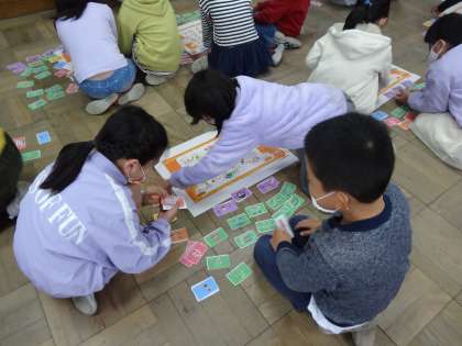 光華大学の学生の方が作成された,食育すごろくを実際に体験しました。休み時間も遊んで食に興味を持って欲しいという願いが込められています。