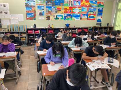 枕草子の一部を,マイネームやフェルトペン,鉛筆を使って書写しました。