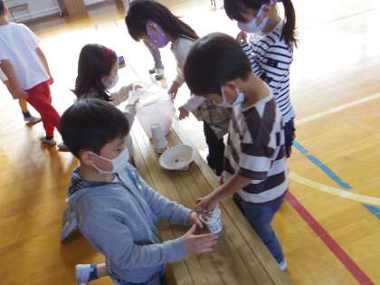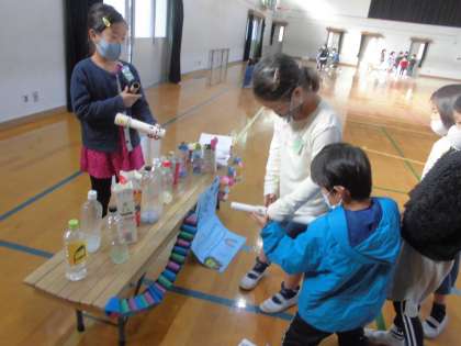 おもちゃフェスティバルに招待してもらいました。2年生が生活科の時間に廃材を利用してつくったおもちゃで,たくさん遊ばせてもらいました!1年生に分かりやすいルールで楽しくゲームができました。「こんなおもちゃ自分たちもつくってみたい!」と思った子もいたようです。来年は,1年生のみなさんが招待できたらいいですね♪