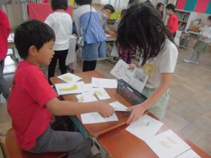国語「ものの名まえ」では,自分たちがやってみたいお店の商品を絵にかき,お店屋さんを開きました。