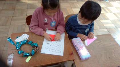 生活の時間に,あさがおのつるを使ってリース作りをしました。カラーテープやひもをくくりつけ鮮やかなリースが完成しました。その後に,折り紙でサンタクロースやトナカイなどクリスマスの装飾づくりもしました。各クラスそれぞれの色があり可愛らしいものに仕上がりました。来週から始まる懇談会の際に是非,教室後ろのツリーをご覧ください♪♪また,個人懇談会の方よろしくお願い致します。