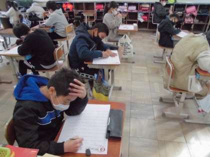 今日,2学期最後の漢字50問テストをしました。